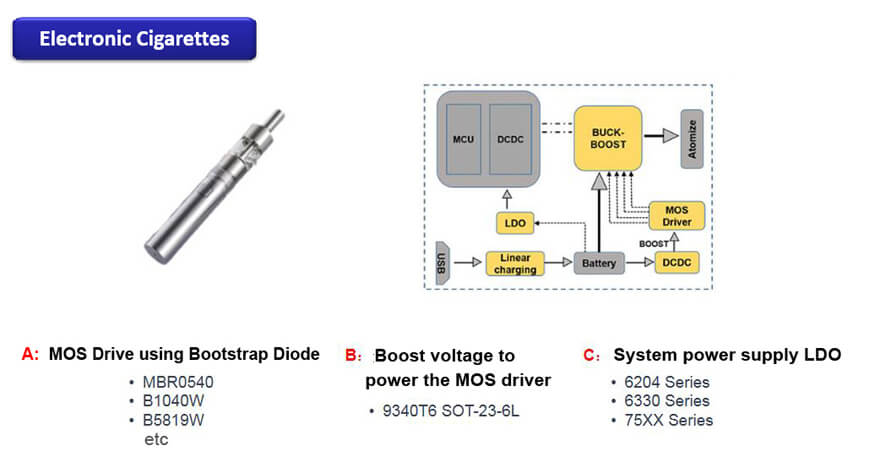 Electronic cigarettes are divided into large smoke and small smoke according to the power size. The smoking process is to atomize the electronic cigarette oil by heating, and atomization is achieved through instantaneous high current and high power.