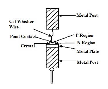 A crystal diode consists of a PN junction, two electrode leads, and a package. The leads are connected to the PN junction and encased, forming the crystal diode. The symbol for a crystal diode is V. The conduction direction of the PN junction is from the P-type semiconductor to the N-type semiconductor, i.e., P to N (P is the anode, N is the cathode). The PN junction conducts in the forward direction and blocks in the reverse direction, allowing unidirectional conduction.